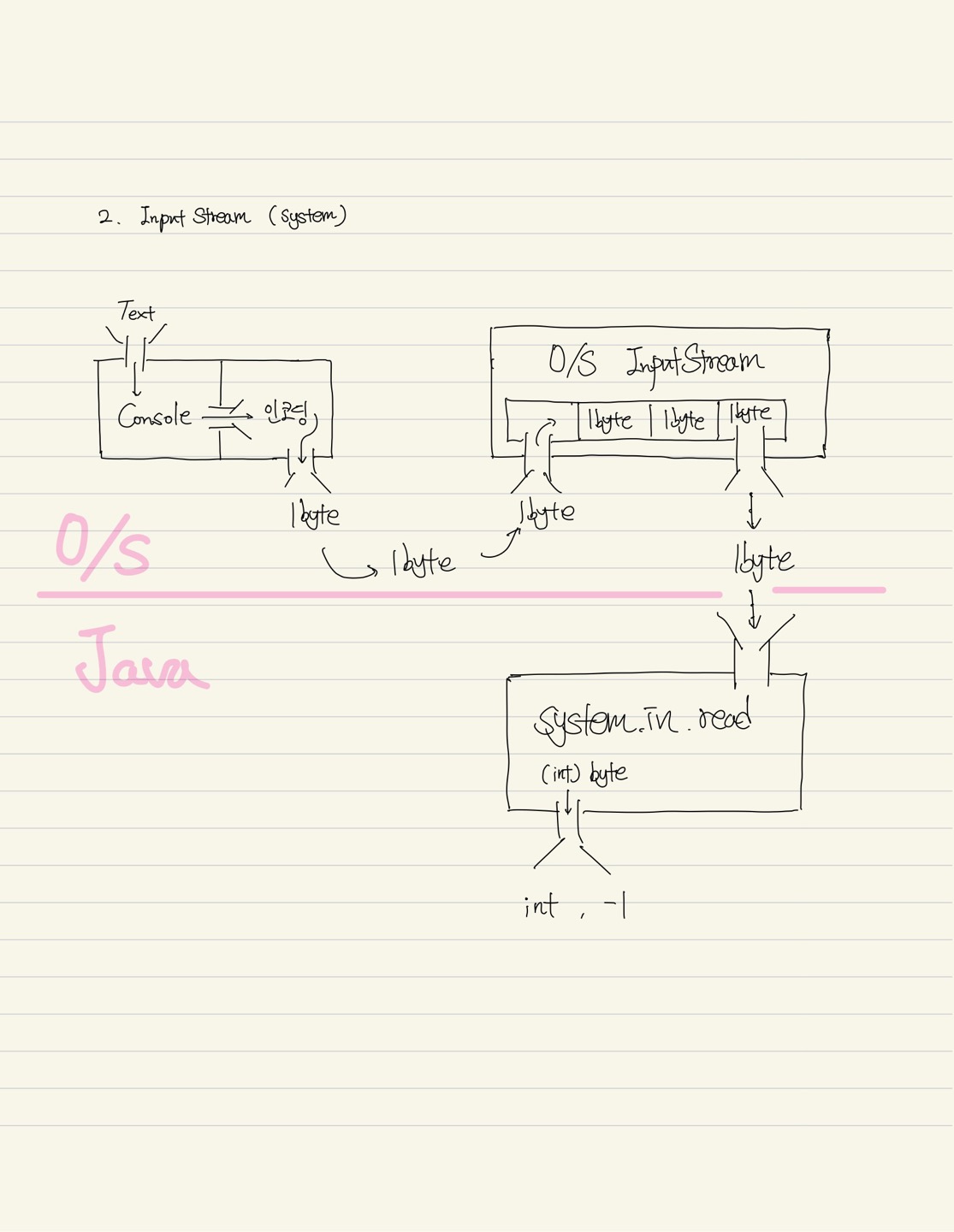 read(b)의 결과값은 byte[ ]에 들어간 데이터의 길이를 반환한다.public static void main(String[] args) throws IOException { InputStream in = System.in; OutputStream out = System.out; byte[] b = new byte[8]; int data = 0; while((data = in.read(b)) != -1) { out.write(b, 0, data); } } // 풀어서 쓰면 public static void main(String[] args) throws IOException { InputStream in = System.in; OutputStream out = System.out; byte[] b = new byte[8]; int data = 0; boolean isOn = true; while(isOn) { data = in.read(b); System.out.println("\n data: " + data); // 읽어들인 데이터의 길이 or -1 if (data != -1) { out.write(b, 0, data); } else { isOn = false; } } }
